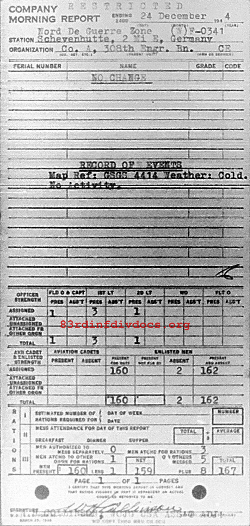 Morning report A/308E for December 24, 1944