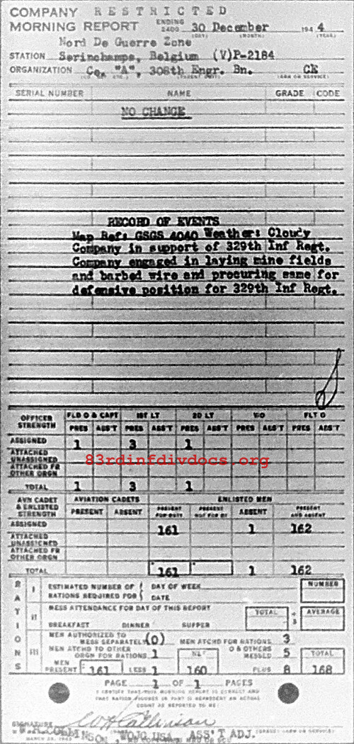 Morning report A/308E for December 30, 1944
