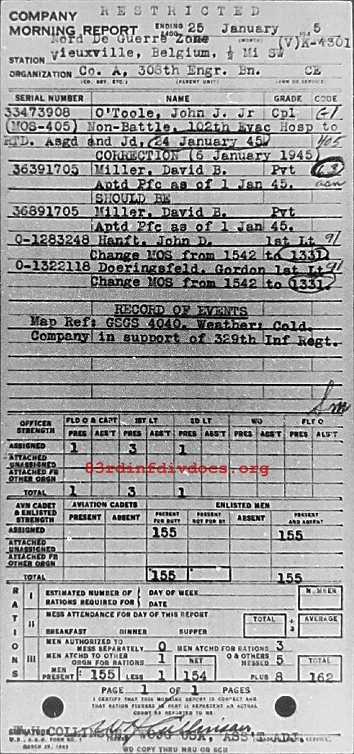 Morning report A/308E for January 25, 1945