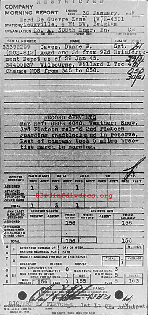 Morning report A/308E for January 30, 1945