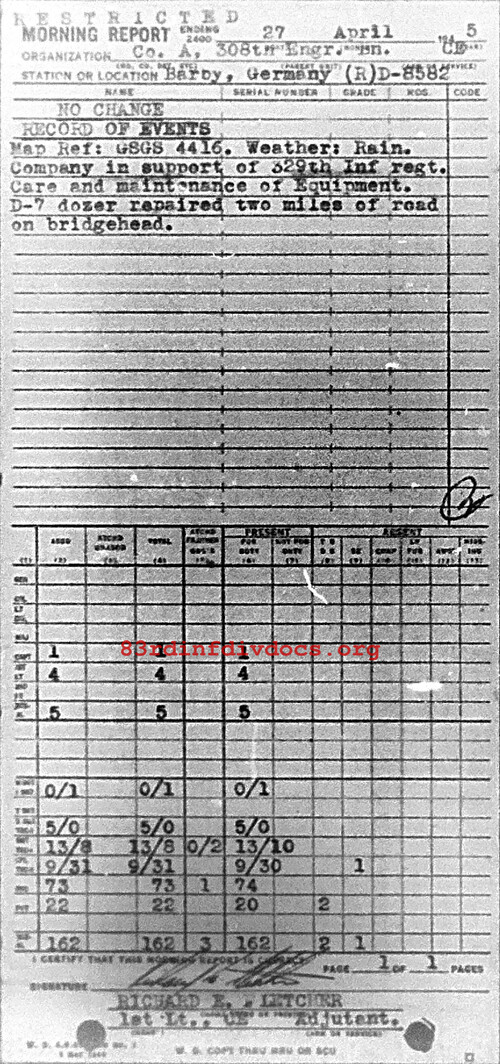 Morning report A/308E for April 27, 1945