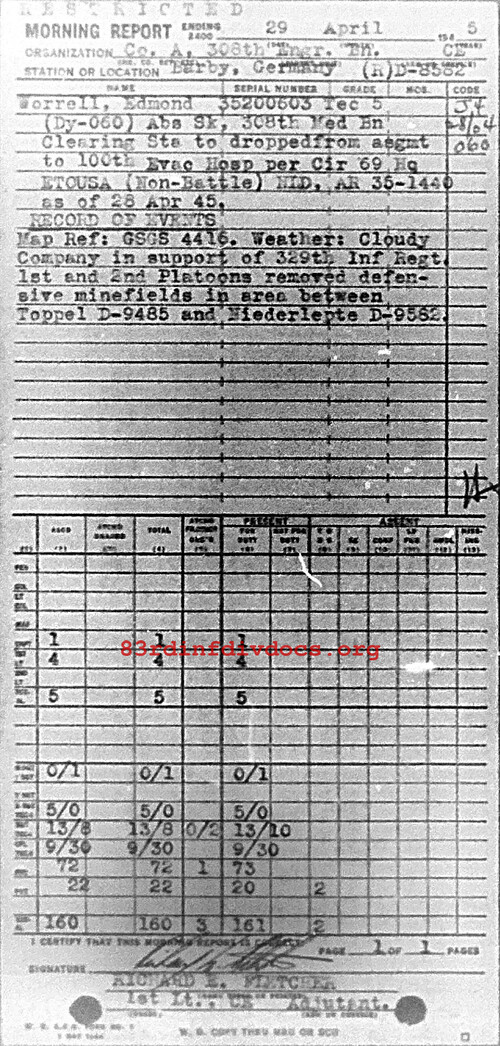 Morning report A/308E for April 29, 1945