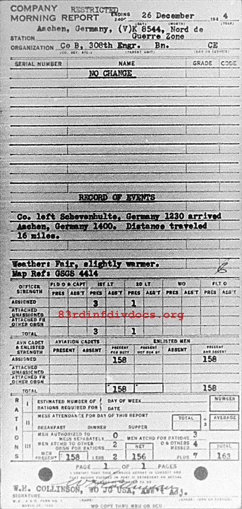 Co left Schevenhutte, Germany 1230 arrived Aachen, Germany 1400. Distance traveled 16 miles. Weather: Fair, slightly warmer.