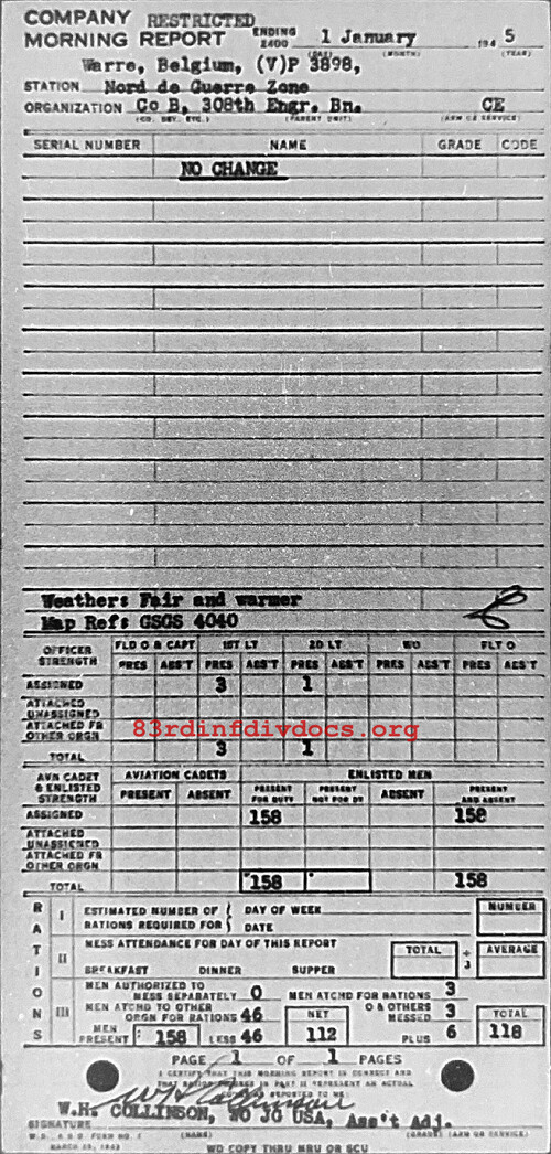 Morning report B/308E for January 1, 1945
