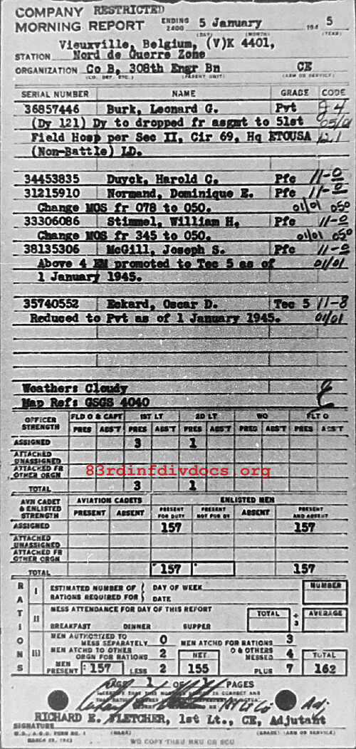 Morning report B/308E for January 5, 1945