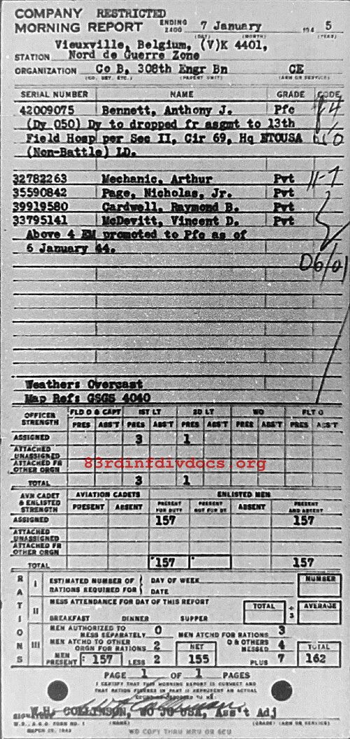 Morning report B/308E for January 7, 1945