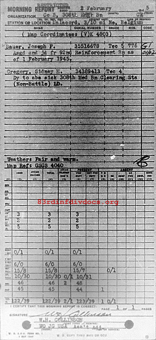 Morning report B/308E for February 2, 1945