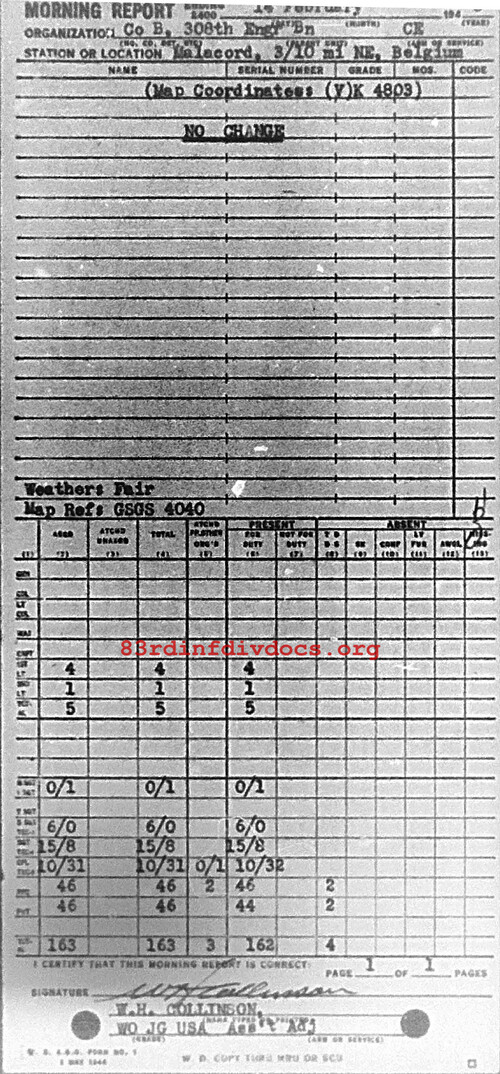 Morning report B/308E for February 14, 1945