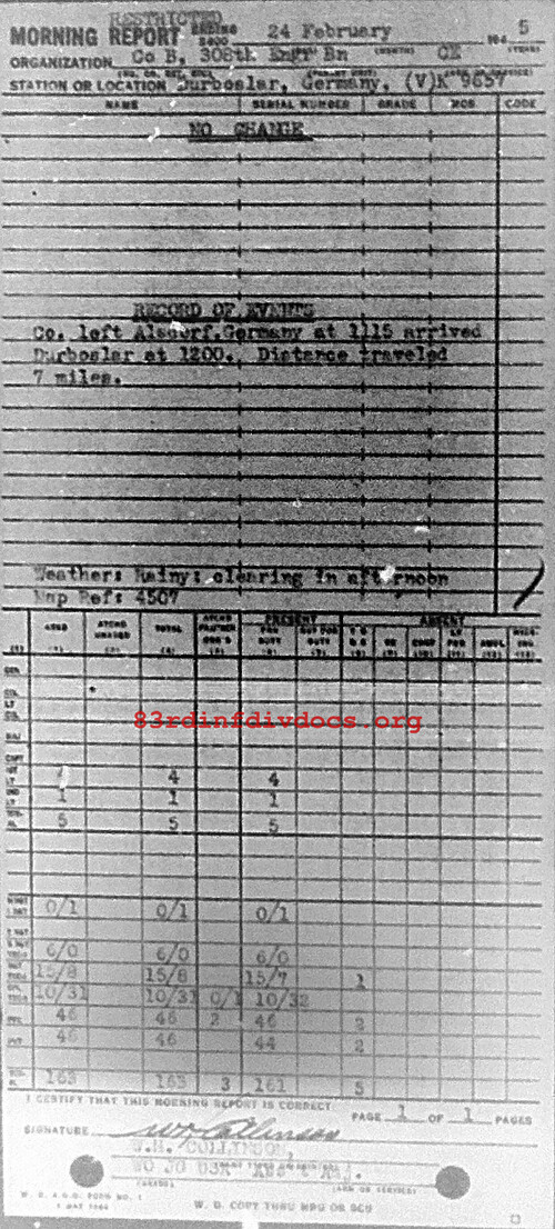 Morning report B/308E for February 24, 1945