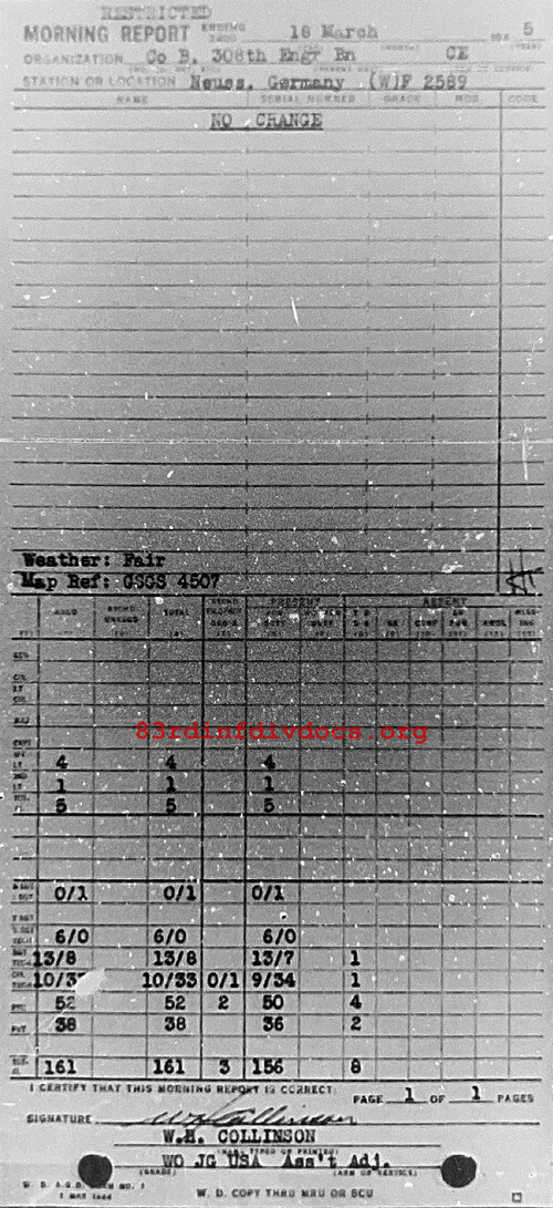 Morning report B/308E for March 18, 1945