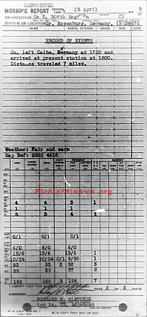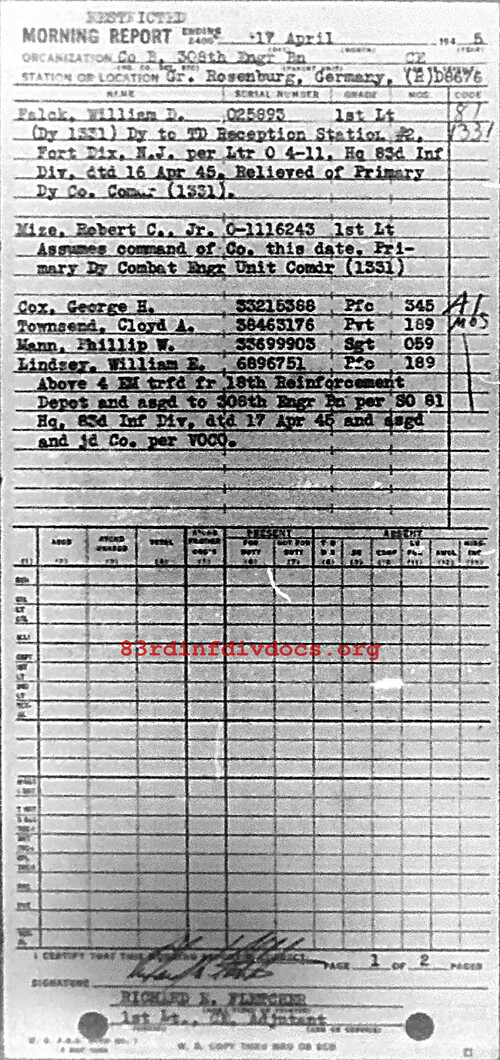Morning report B/308E for April 17, 1945