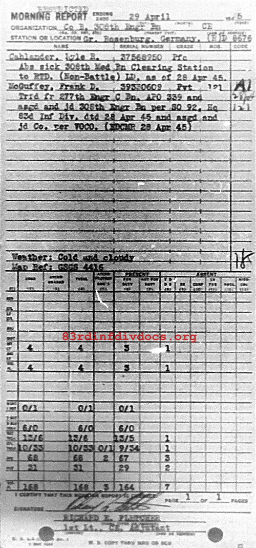 Morning report B/308E for April 29, 1945