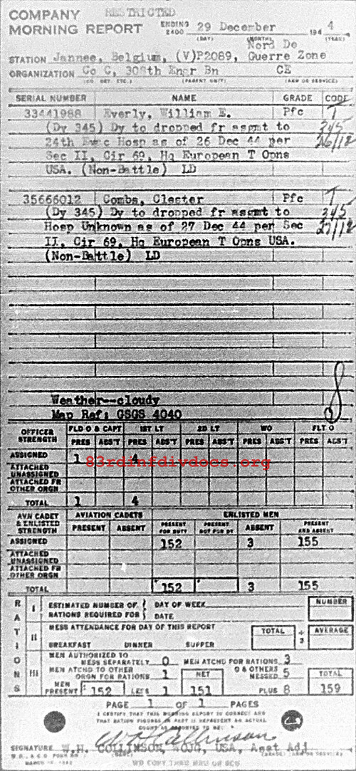 Morning report C/308E for December 29, 1944