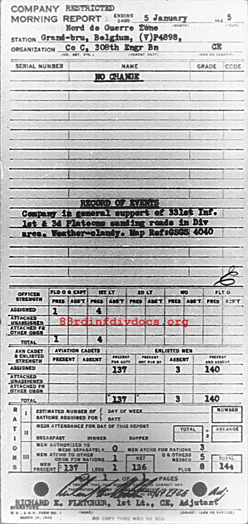 Morning report C/308E for January 5, 1945