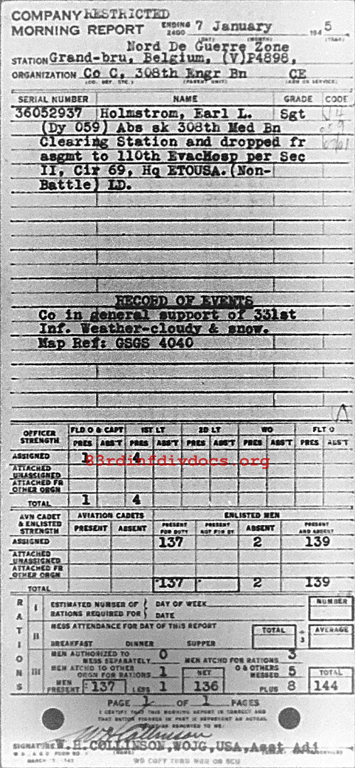 Morning report C/308E for January 7, 1945