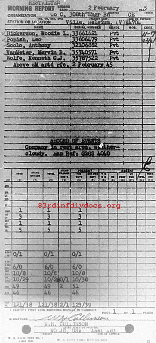 Morning report C/308E for February 2, 1945