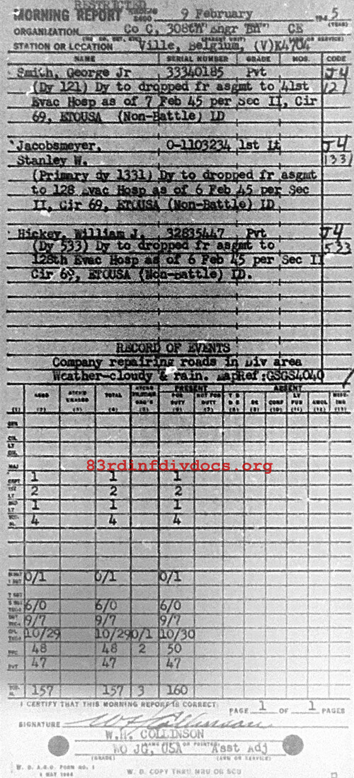 Morning report C/308E for February 9, 1945