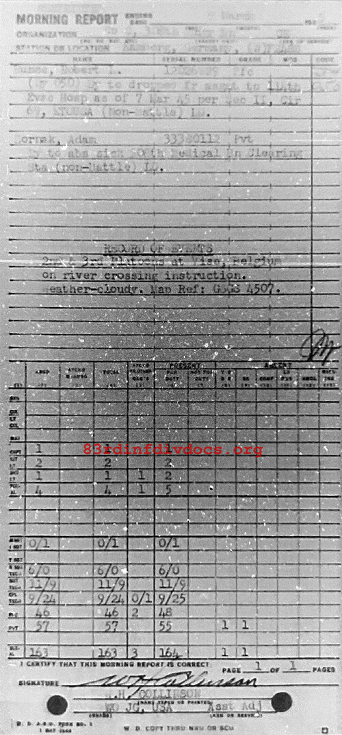 Morning report C/308E for March 9, 1945