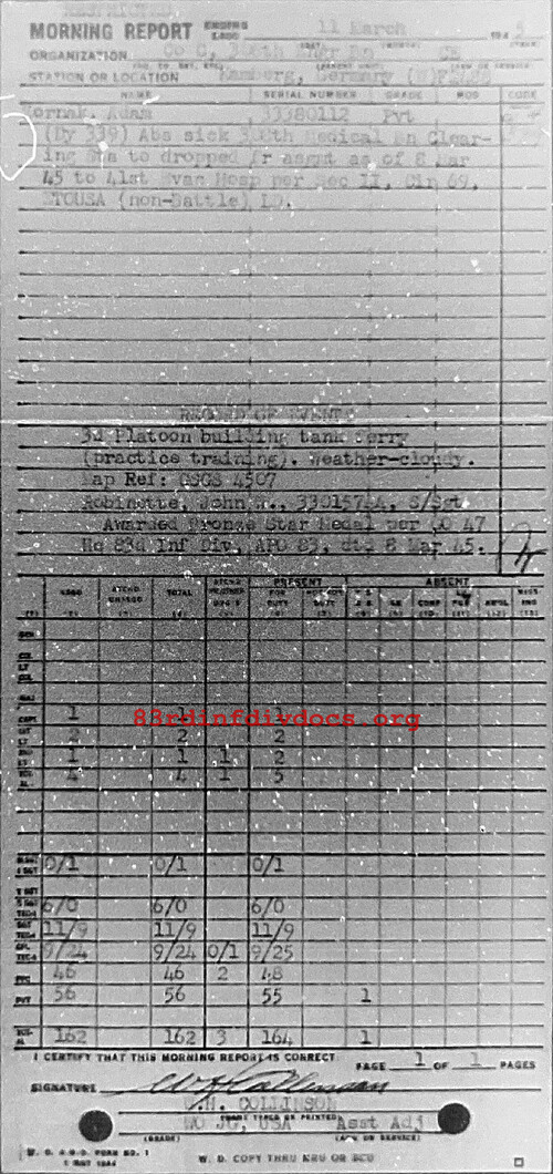 Morning report C/308E for March 11, 1945