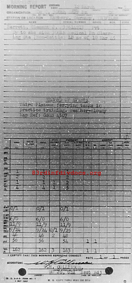 Morning report C/308E for March 12, 1945