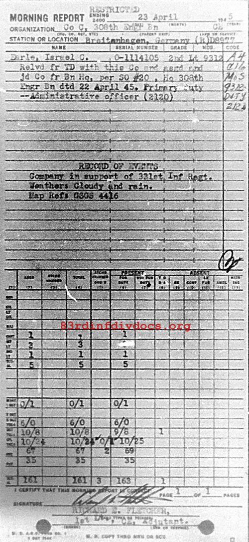 Company in support of 331st Inf Regt. Weather: Cloudy and rain.