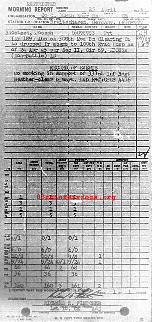Morning report C/308E for April 25, 1945