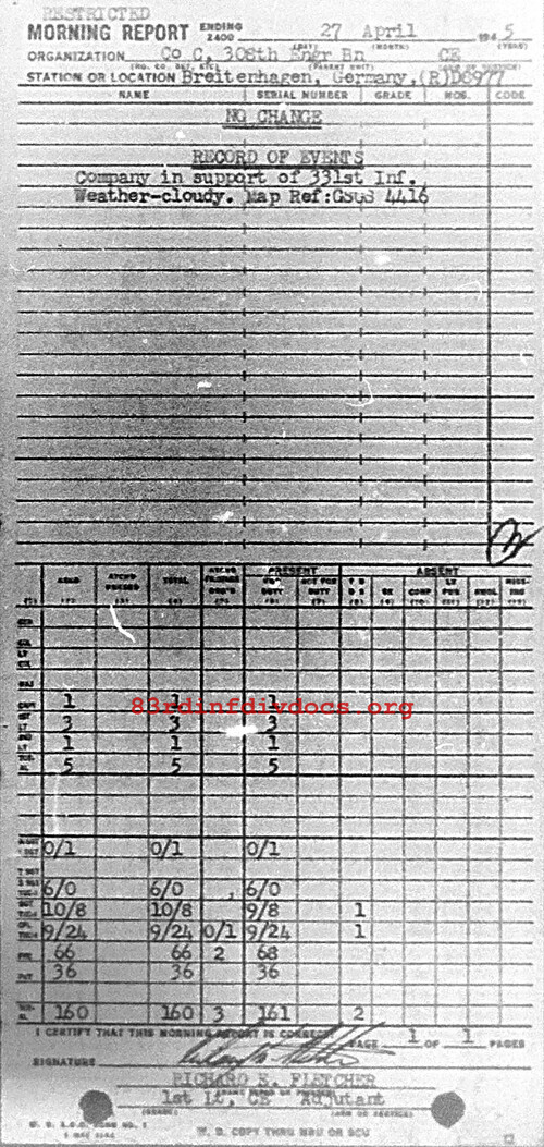 Morning report C/308E for April 27, 1945