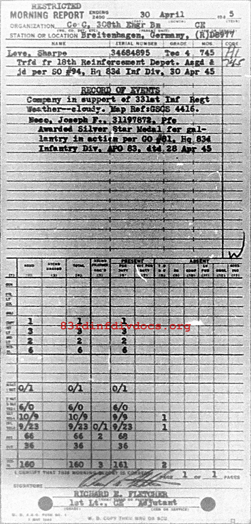 Morning report C/308E for April 30, 1945