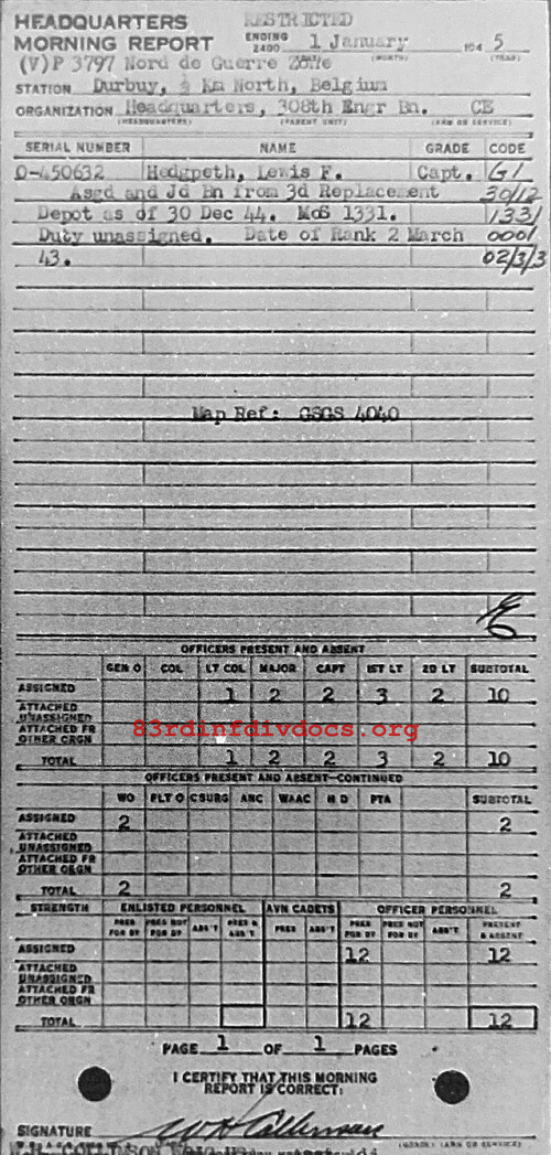 Morning report HQ/308E for January 1, 1945