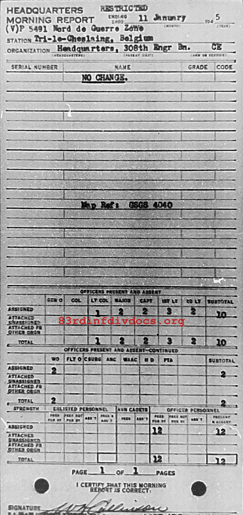 Morning report HQ/308E for January 11, 1945
