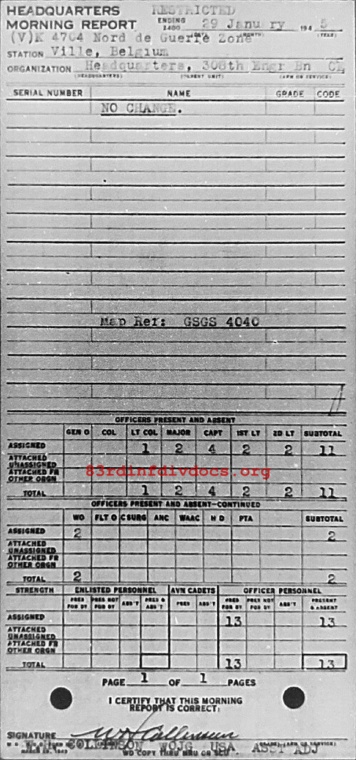 Morning report HQ/308E for January 29, 1945