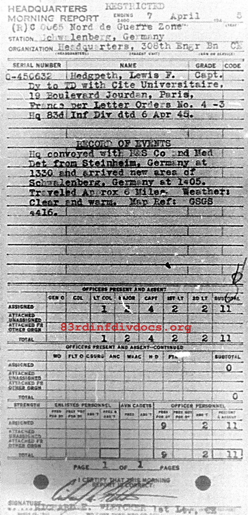 Morning report HQ/308E for April 7, 1945