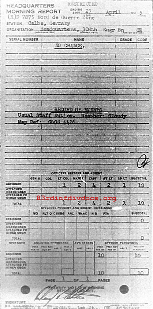 Morning report HQ/308E for April 27, 1945
