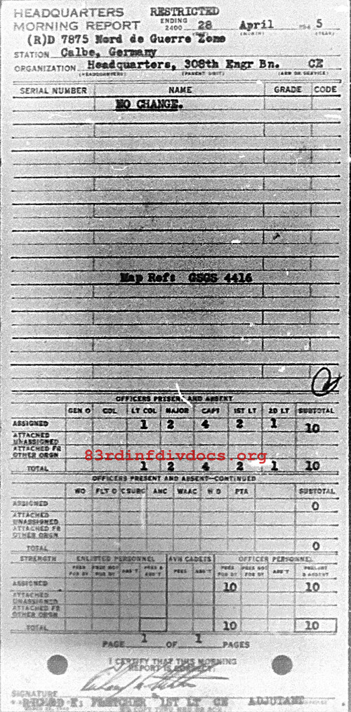 Morning report HQ/308E for April 28, 1945