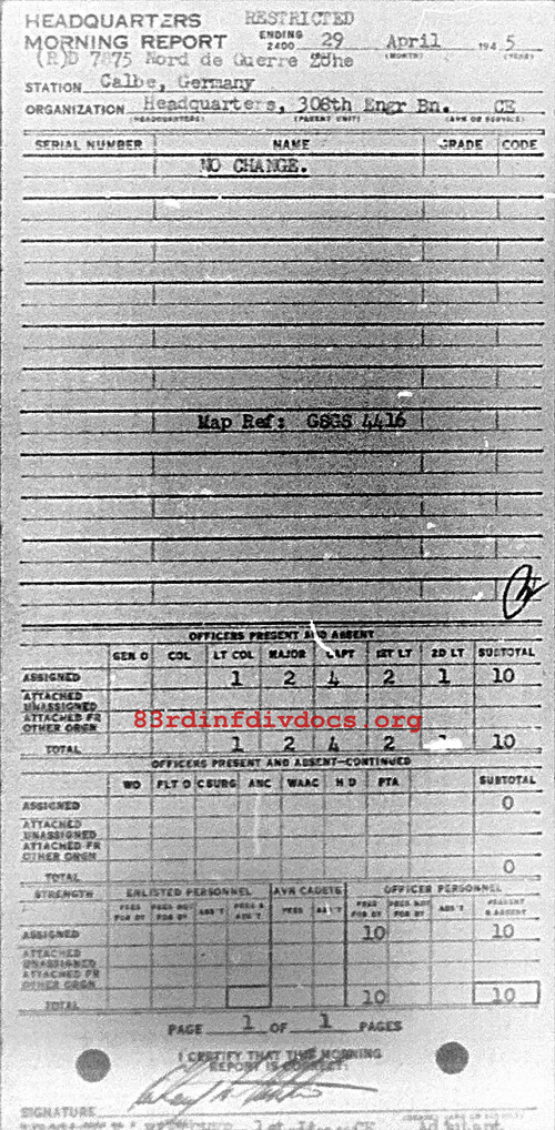 Morning report HQ/308E for April 29, 1945