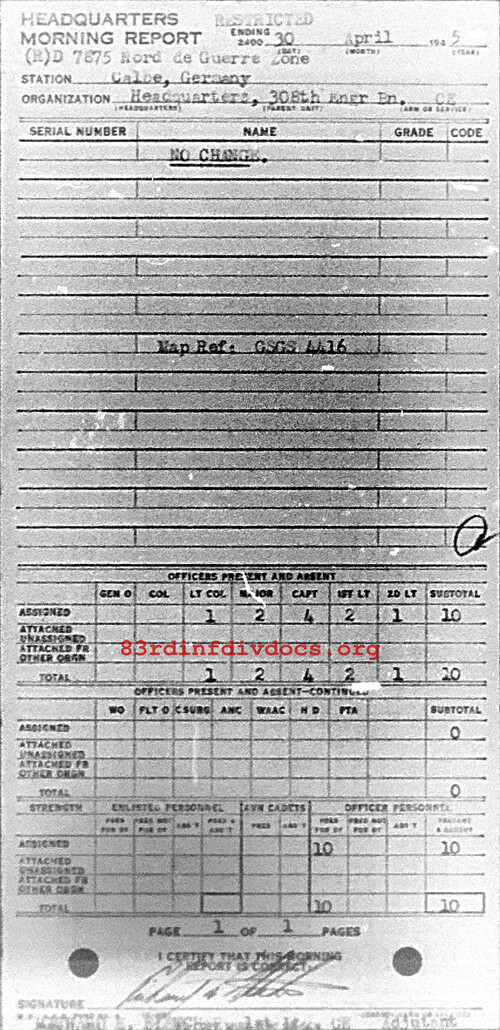 Morning report HQ/308E for April 30, 1945