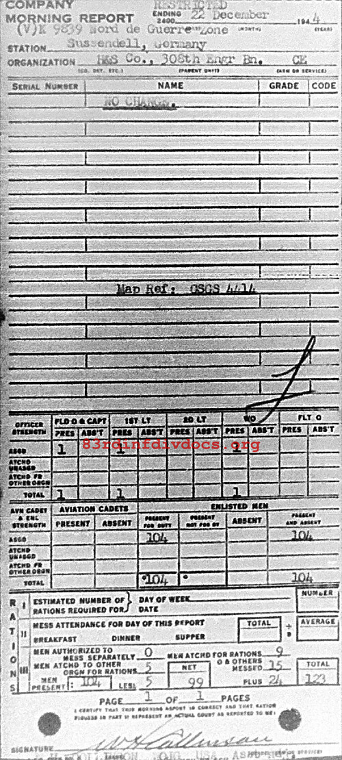 Morning report HQSVCO/308E for December 22, 1944
