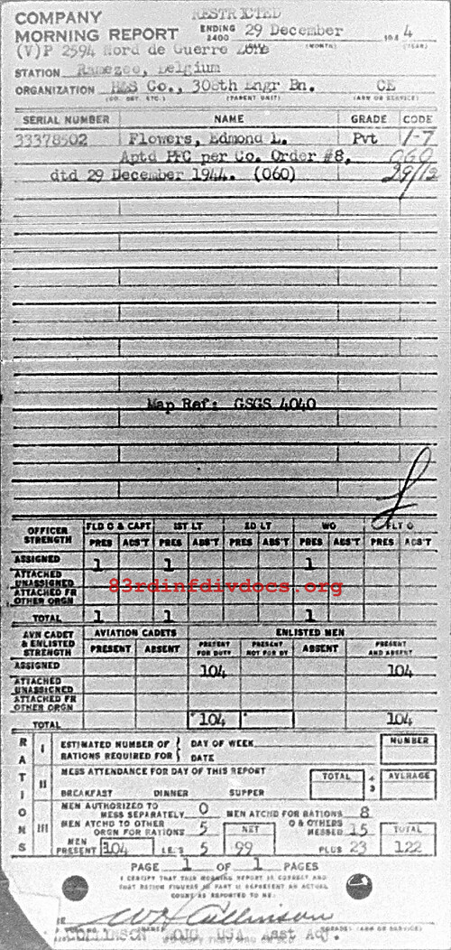 Morning report HQSVCO/308E for December 29, 1944