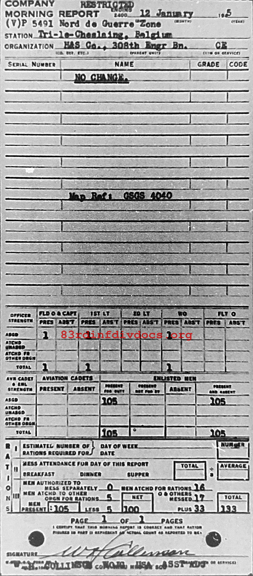 Morning report HQSVCO/308E for January 12, 1945