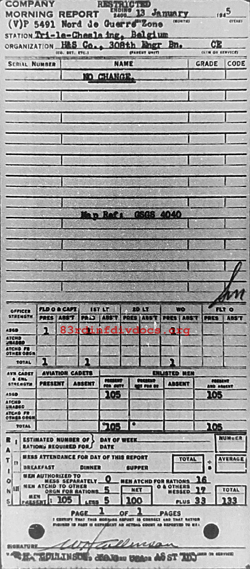 Morning report HQSVCO/308E for January 13, 1945