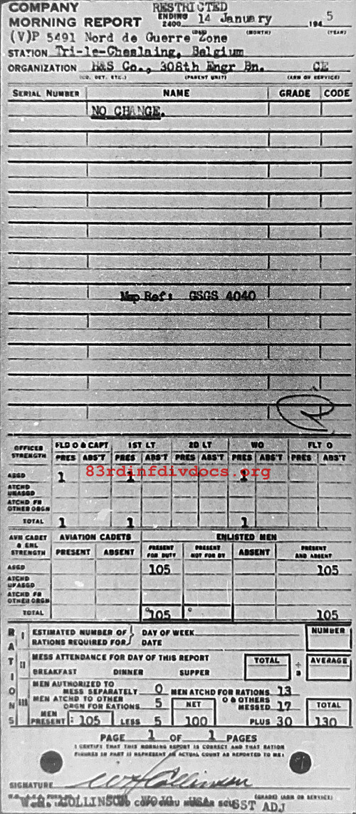 Morning report HQSVCO/308E for January 14, 1945