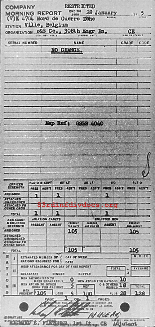 Morning report HQSVCO/308E for January 28, 1945