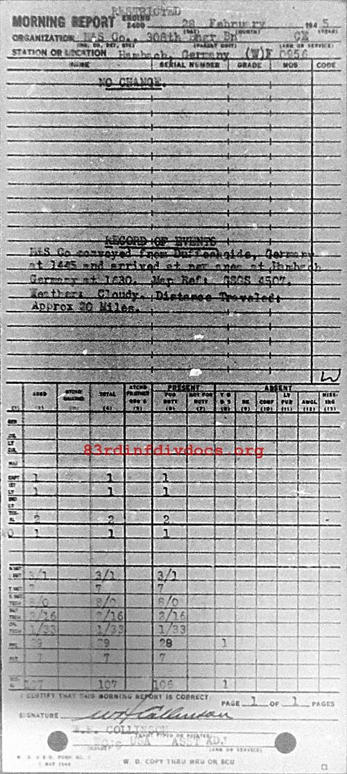 Morning report HQSVCO/308E for February 28, 1945