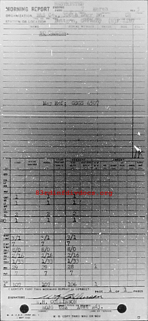 Morning report HQSVCO/308E for March 7, 1945