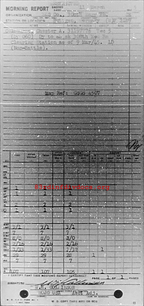 Morning report HQSVCO/308E for March 11, 1945
