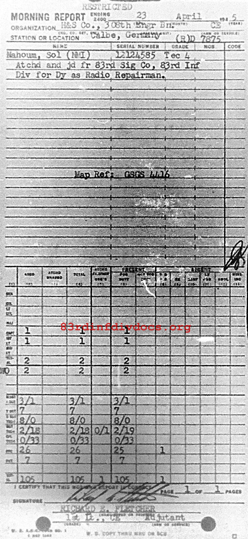 Morning report HQSVCO/308E for April 23, 1945