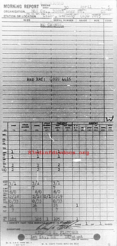 Morning report HQSVCO/308E for April 30, 1945