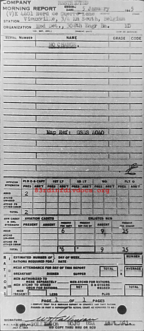 Morning report MEDDET/308E for January 5, 1945