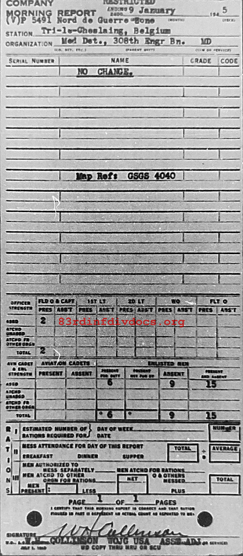 Morning report MEDDET/308E for January 9, 1945
