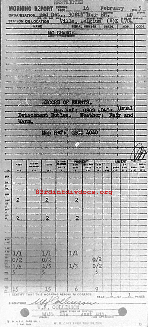 Morning report MEDDET/308E for February 16, 1945